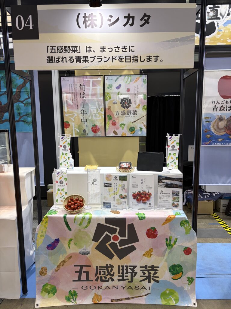 ホール9「地方・地域産品(青森県ブース)」にて出展し、弊社青果総合ブランド「五感野菜」の主力商材(自社生産)である「五感トマト」をご提案いたしました。